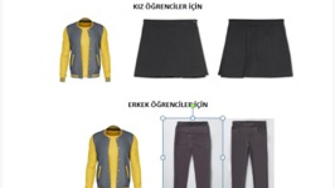 Öğrenci kılık ve kıyafet yönetmeliğinin 3.maddesinin 2.fıkrasına göre 03.02.2025 tarihli 2.Dönem Başı Öğretmenler Kurulu 5 no’lu kararı ve 10.02.205 tarihli Okul Aile Birliği 10 no’lu kararı ,öğretmen ve veli anketleri neticesinde okul aile birliğimizin koordinesinde okul kıyafetlerimiz belirlenmiştir. 2025-2026 Eğitim Öğretim yılında 1.sınıf öğrencilerimizden başlayarak kademeli olarak kıyafet değişikliği uygulanacaktır. Ara sınıflarda yeni belirlenen okul kıyafetini giyme zorunluluğu yoktur. Okul kıyafetini yenilemesi gereken ara sınıf öğrencilerimiz isterlerse yeni okul kıyafetlerini temin edebilirler.